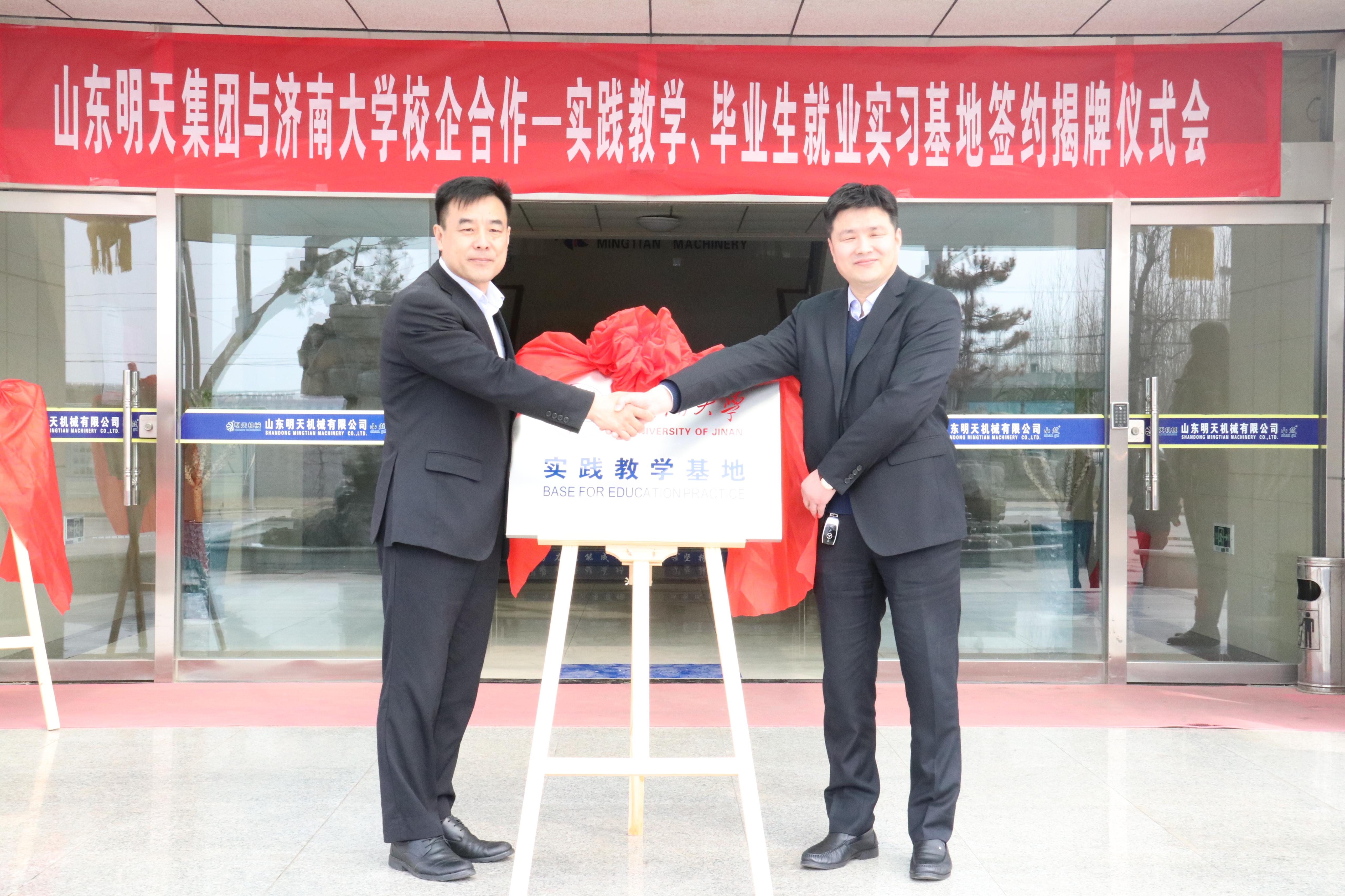 近日,山東明天機(jī)械集團(tuán)股份有限公司與濟(jì)南大學(xué)自動化與電氣工程學(xué)院本科實(shí)踐教學(xué)基地、畢業(yè)生就業(yè)實(shí)習(xí)基地等簽約、揭牌儀式舉行。自動化與電氣工程學(xué)院院長崔煥勇,黨委副書記、副院長陳春鋒,副院長王中華,以及學(xué)院部分教師;山東明天機(jī)械集團(tuán)股份有限公司董事長??〔?、總經(jīng)理劉廣嶺,磁浮技術(shù)總工張英哲、磁浮技術(shù)部部長丁印恕、人力資源部部長寧軍參加活動。